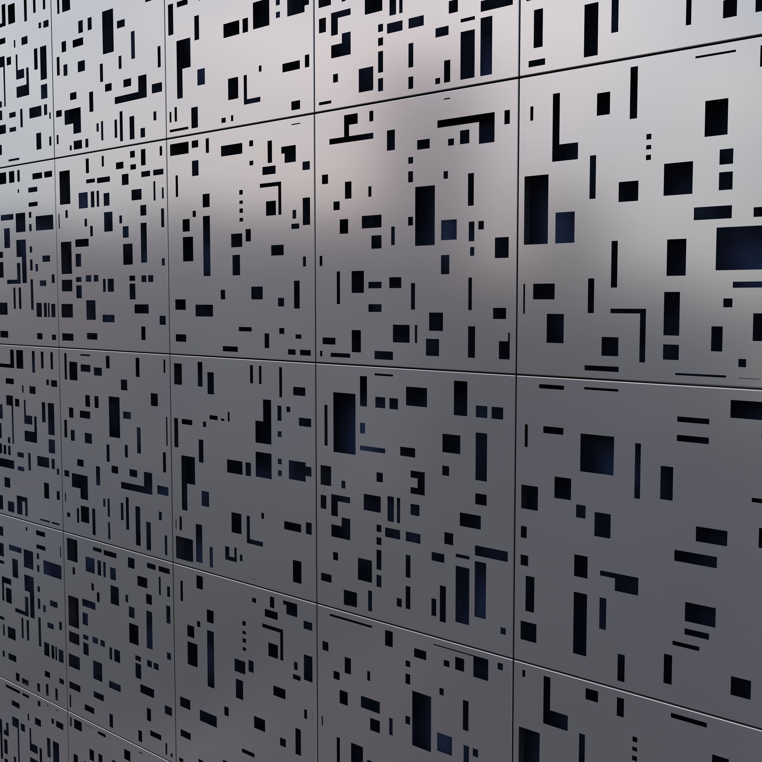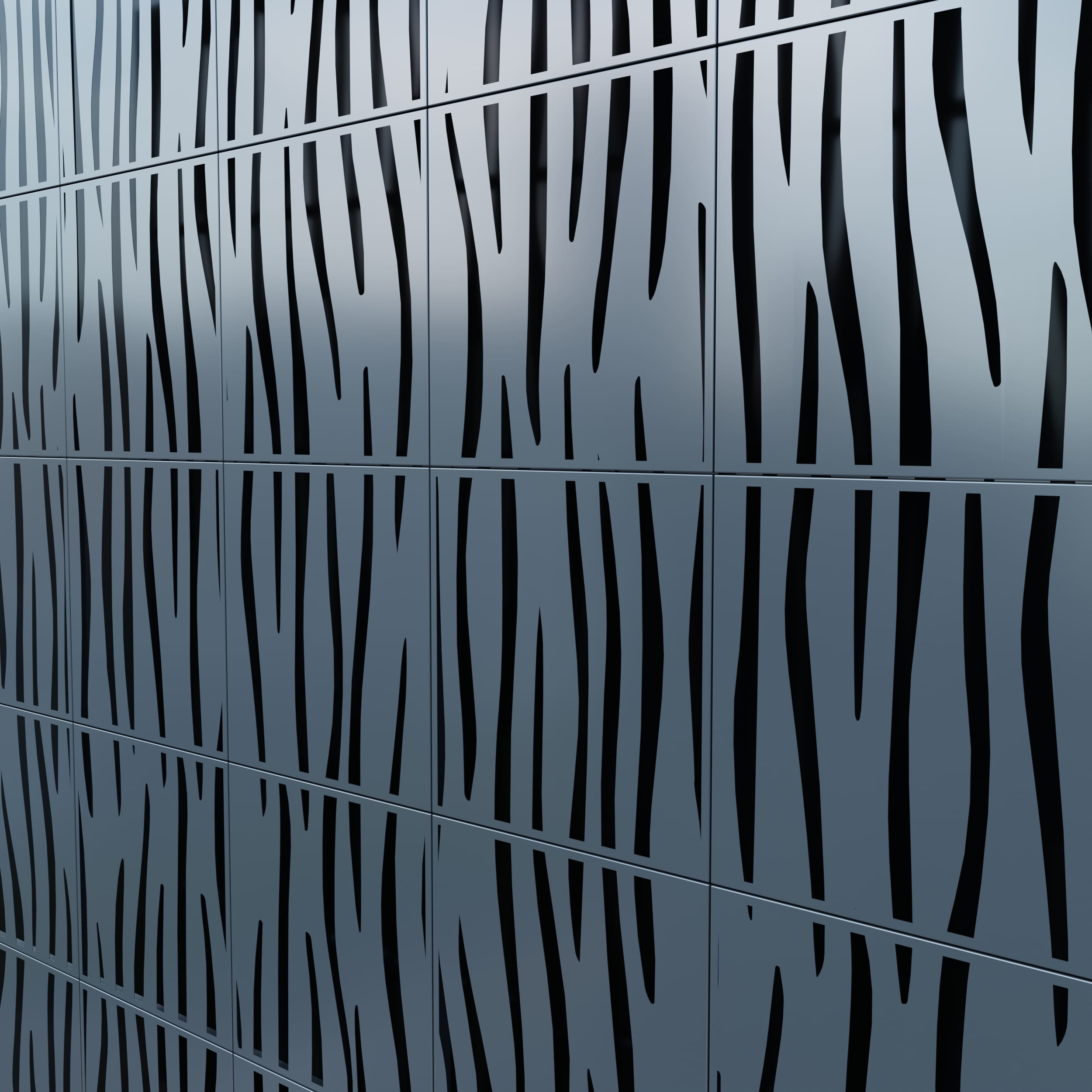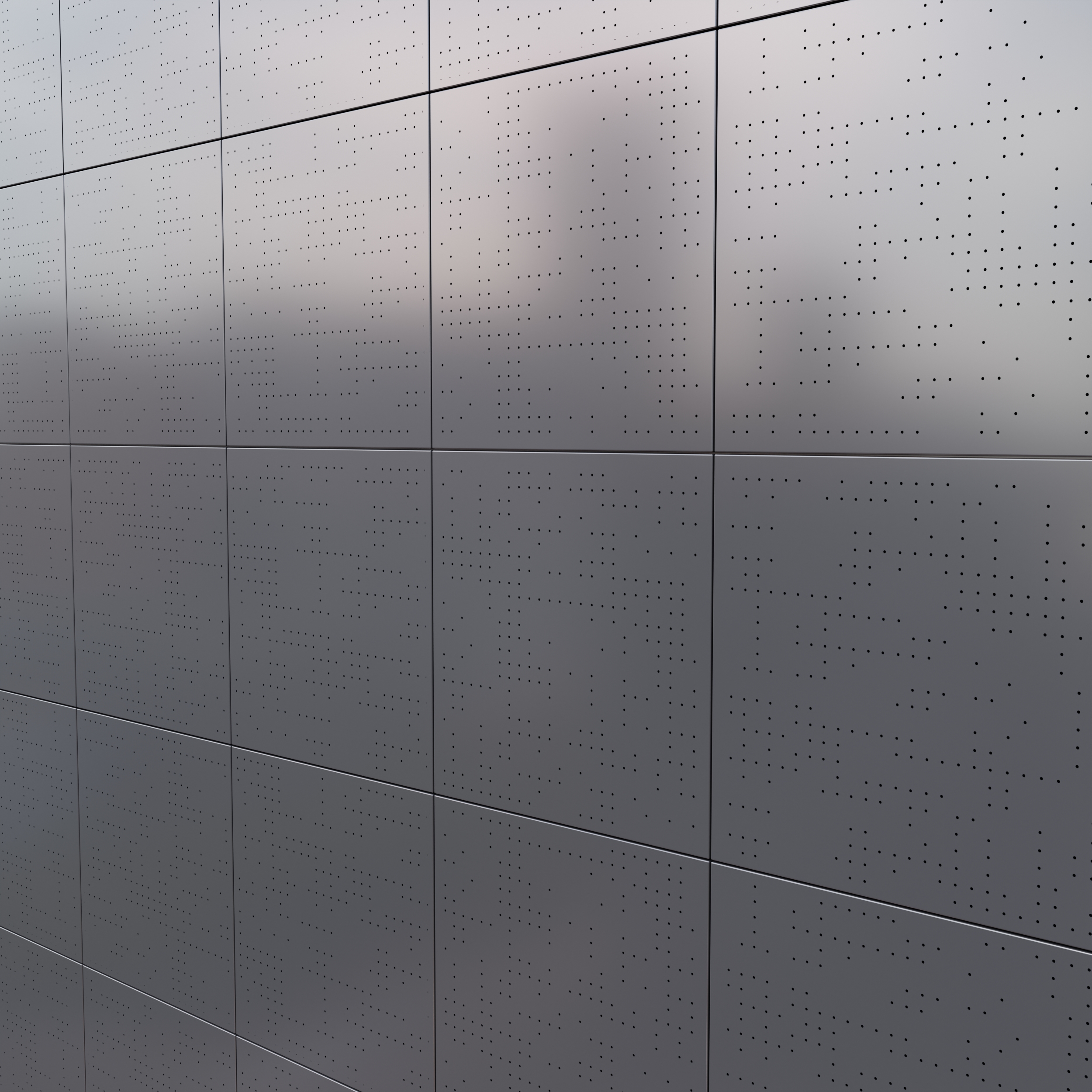 Перфорированные фасадные панели изготавливаются из оцинкованной стали 0.7-1.5 мм с полимерной окраской или покрытием полиэстер, либо легированной стали Cor-Ten толщиной 1.0-1.5 мм.