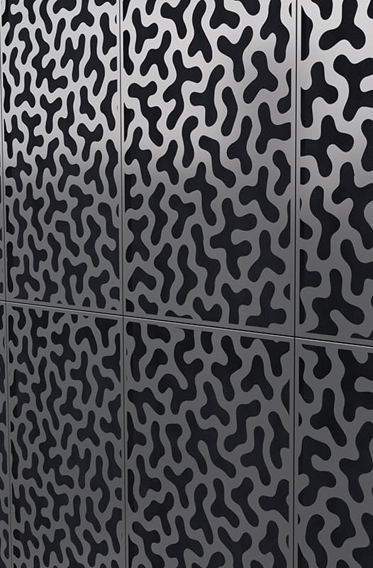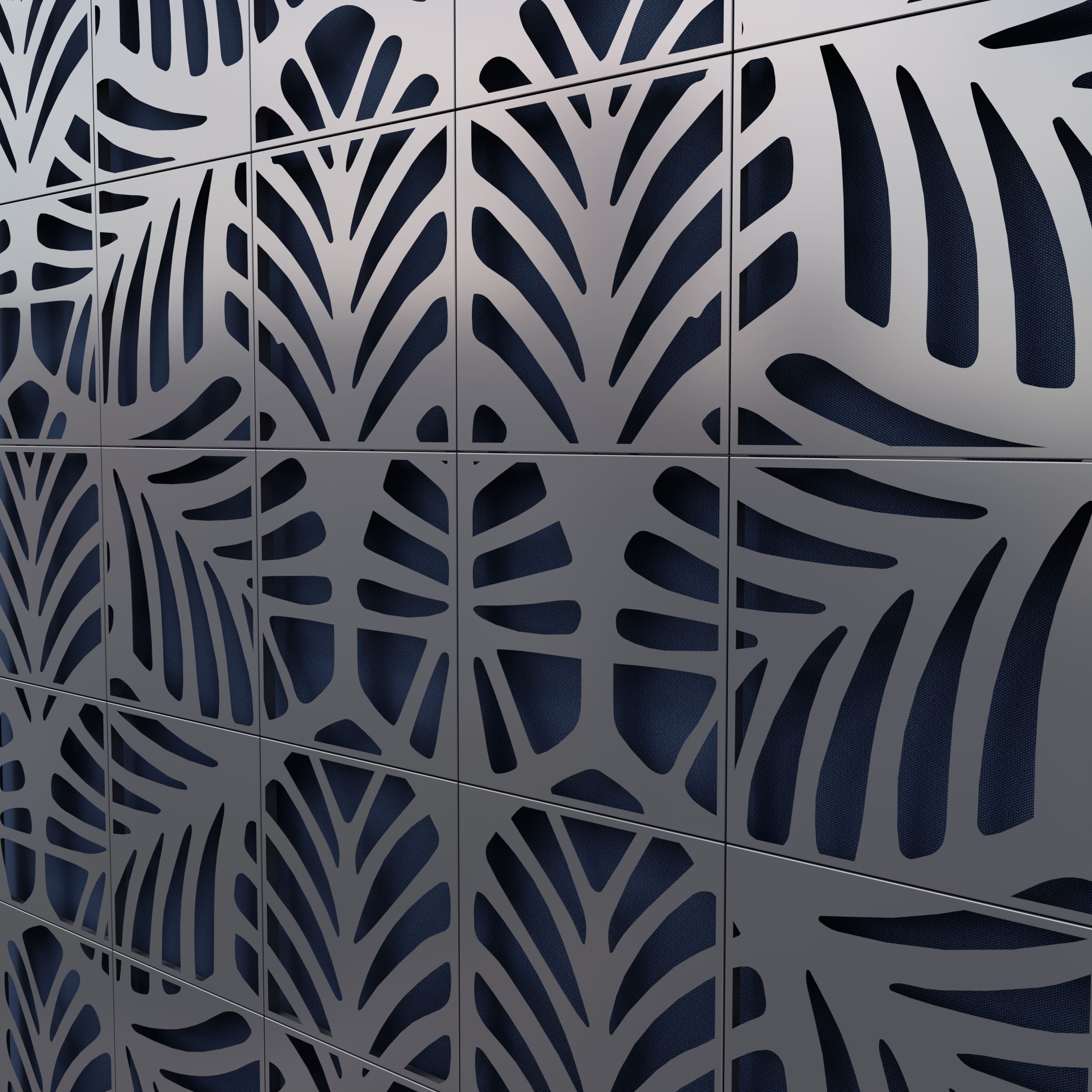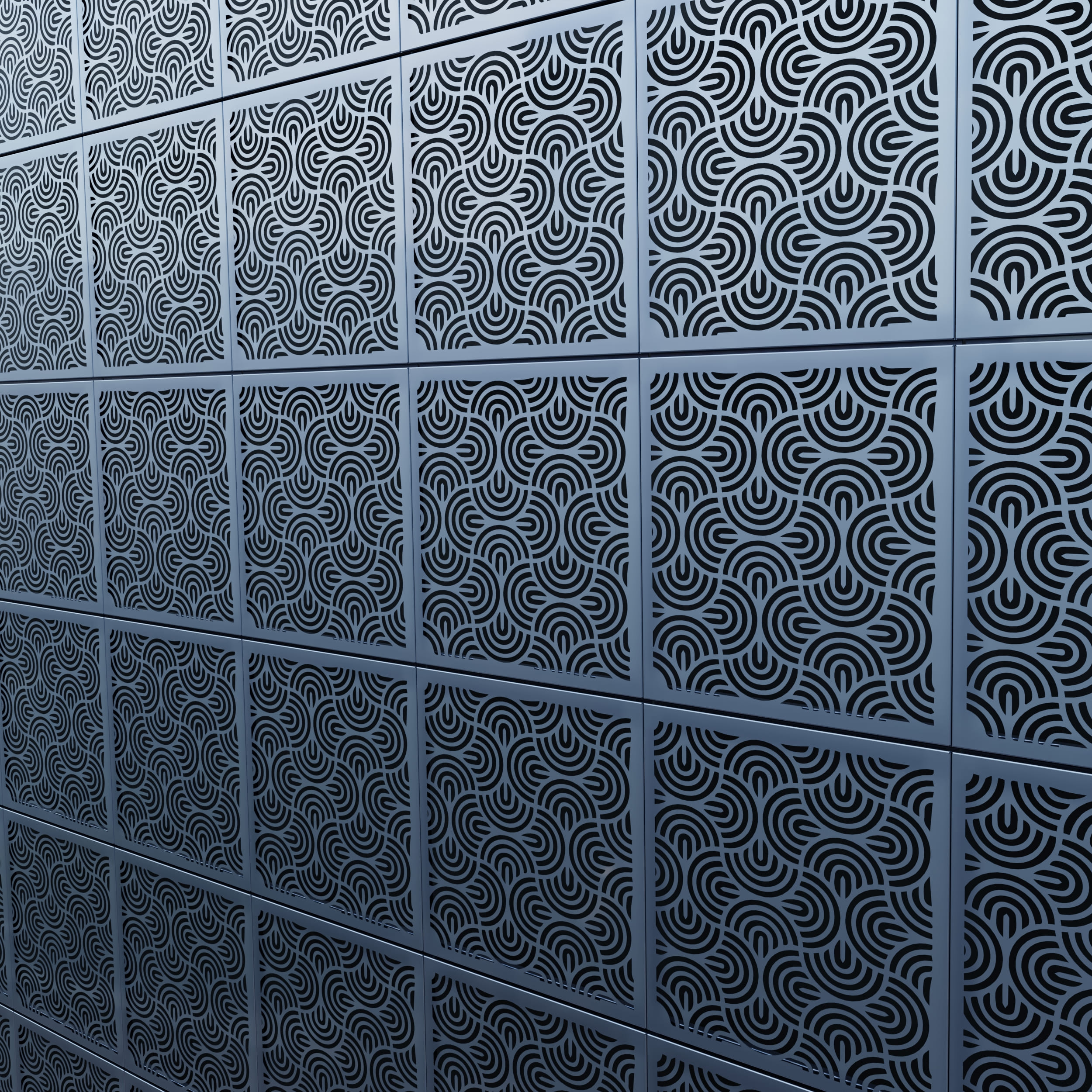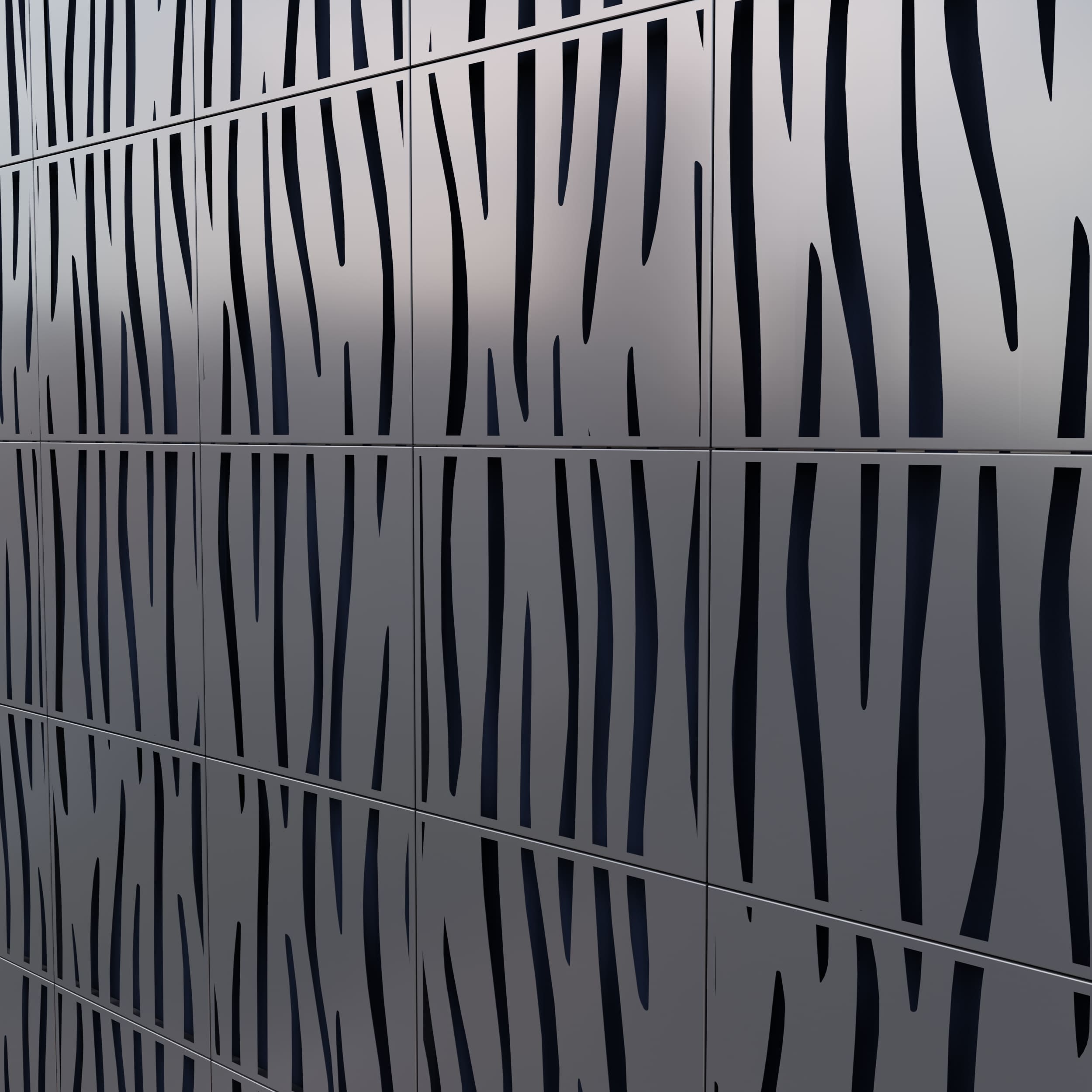 Перфорированные фасадные панели изготавливаются из оцинкованной стали 0.7-1.5 мм с полимерной окраской или покрытием полиэстер, либо легированной стали Cor-Ten толщиной 1.0-1.5 мм.