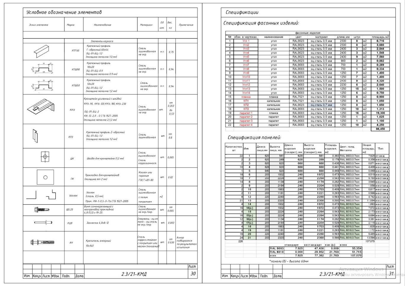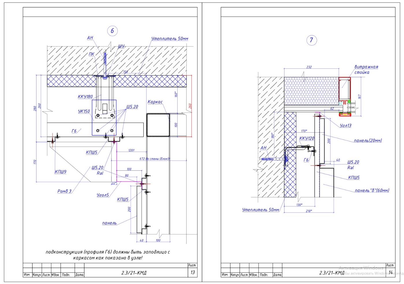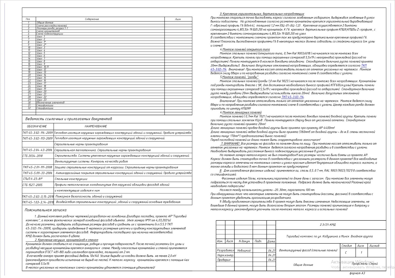 Фасадная проектная документация марки КМД включает в себя следующие разделы: