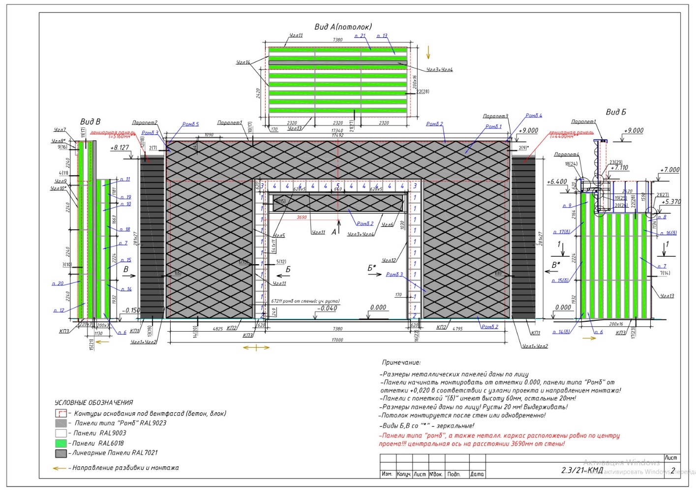 Мы возьмем на себя часть вашей работы: например, геодезическую съемку и сканирование фасада здания, испытание анкеров на вырыв, разработаем КМД со всеми узлами примыканиями, раскладкой панелей максимально подробно. А КМД со спецификациями, всеми нюансами и титульным листом вы получите бесплатно при заказе у нас комплекта материалов.